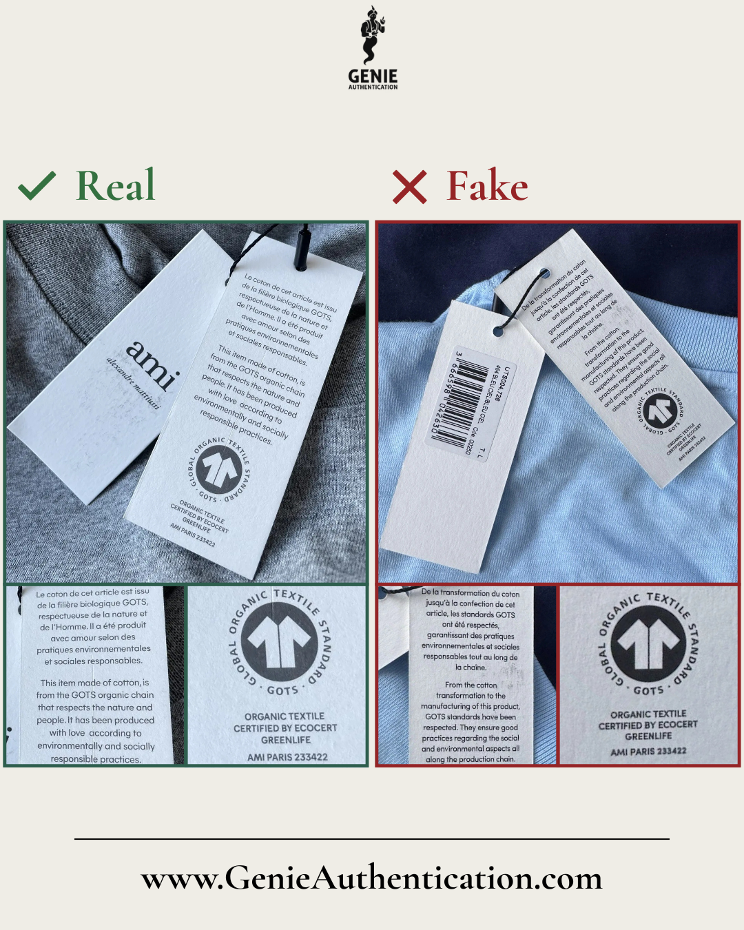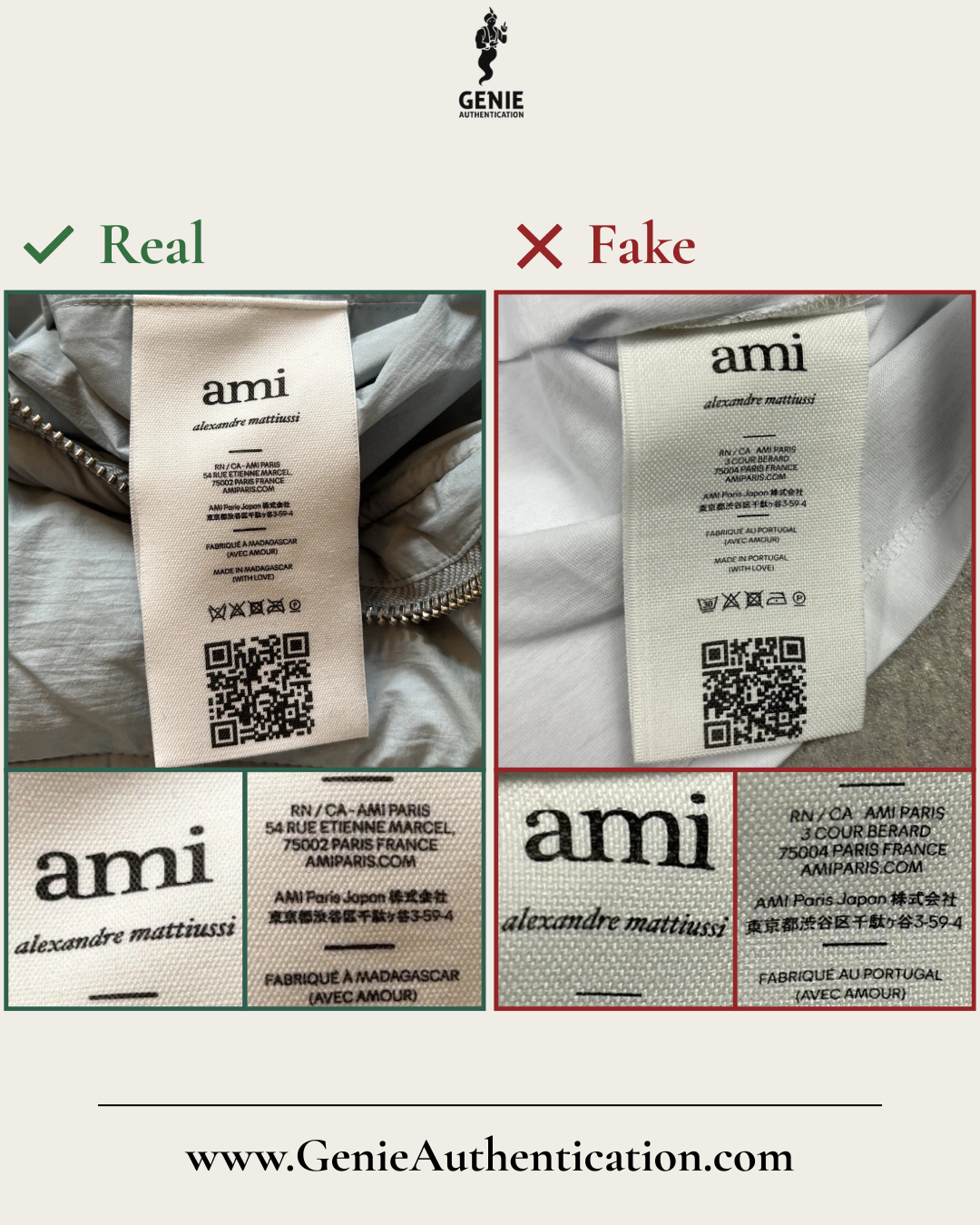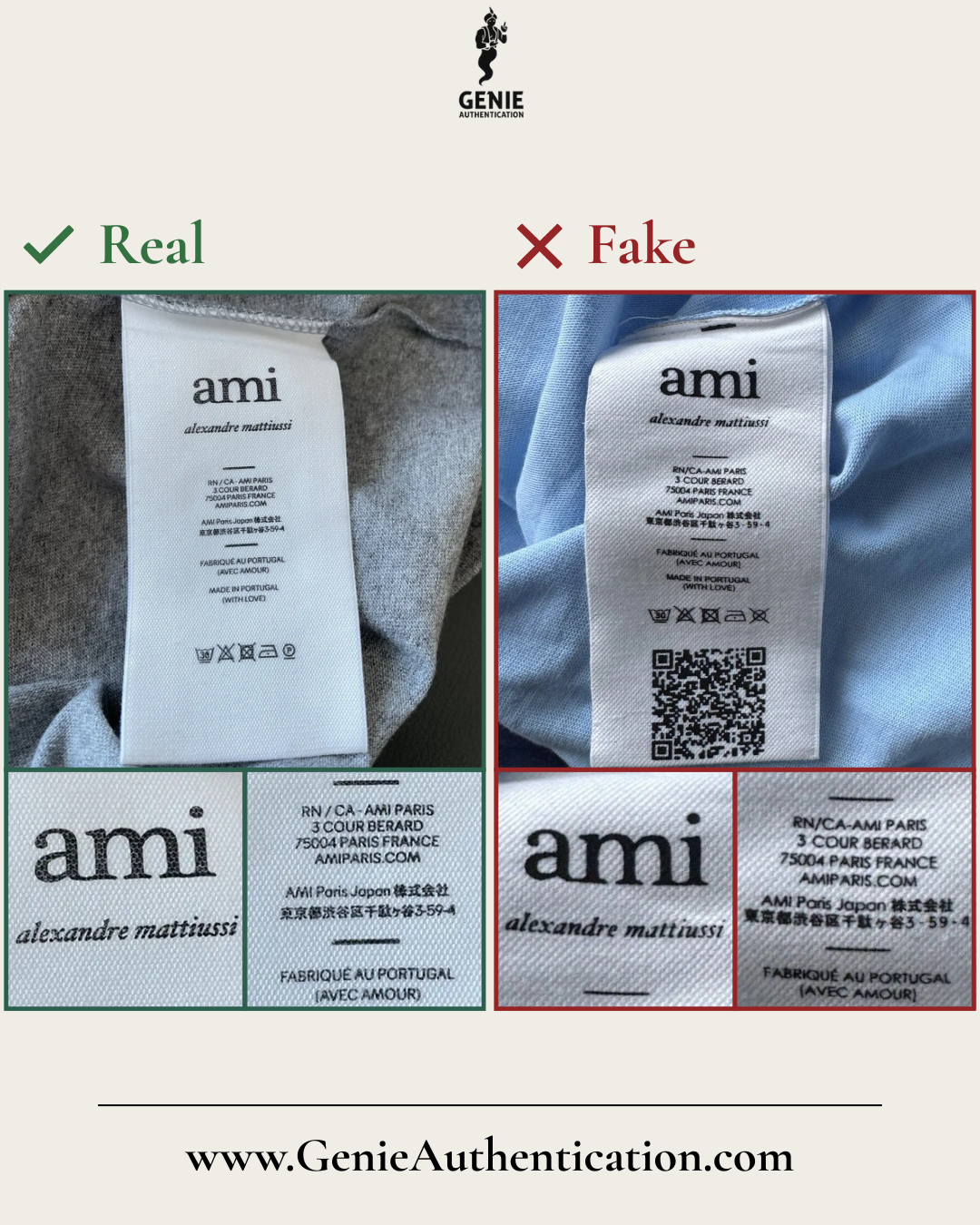Note: This guide is not exhaustive. Authentic Ami Paris products can vary by model, season, and country of manufacture, so genuine items may differ from the examples shown. Counterfeit versions are constantly evolving, with new variations regularly appearing that may not be documented here. When in doubt, professional authentication is strongly recommended.