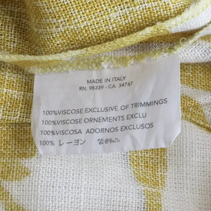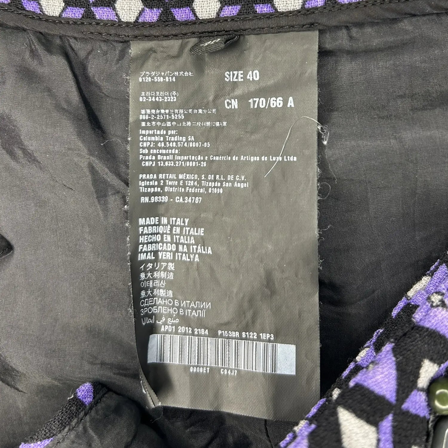 An authentic label from this period is showcased, marking Prada's first effort at a longer-style wash label that included more detailed information about the composition of the items and their care instructions. This label was also available in black with white text.