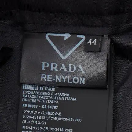 In 2020, Prada's commitment to replacing all virgin nylon with regenerated Re-Nylon, sourced from recycled materials like ocean plastics, fishing nets, and textile fiber waste, officially took effect. As part of this transition, a new Re-Nylon label replaced the 2015 Prada label on all Re-Nylon products. It was also available in white with black text.