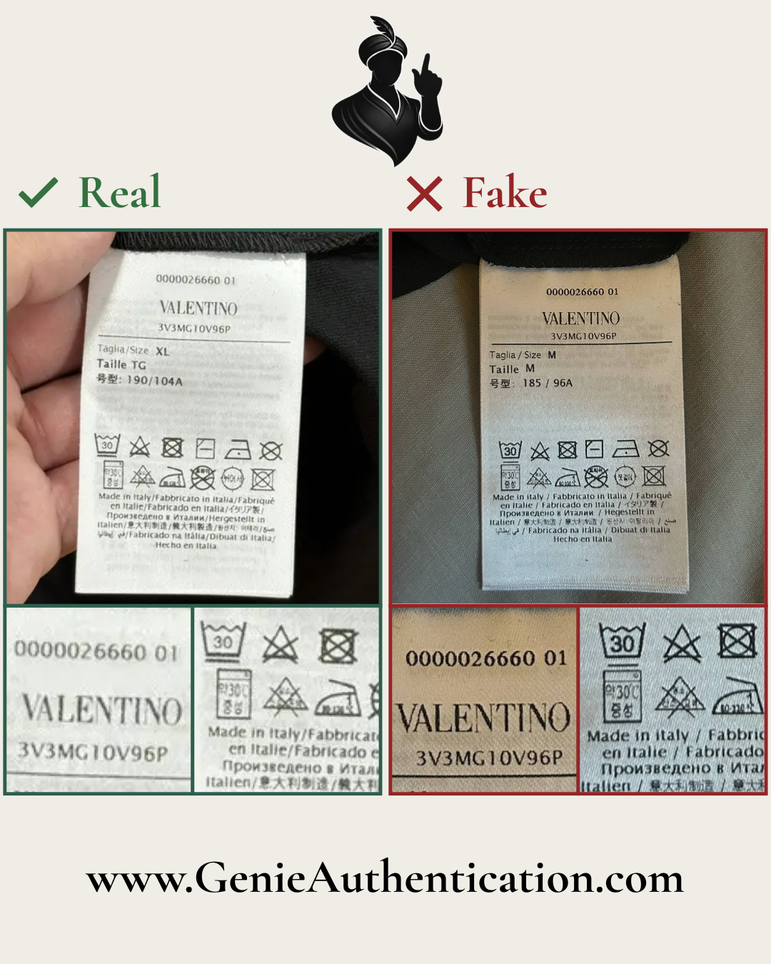 Note: This guide is not exhaustive. Authentic Valentino products can vary by model, season, and country of manufacture, so genuine items may differ from the examples shown. Counterfeit versions are constantly evolving, with new variations regularly appearing that may not be documented here. When in doubt, professional authentication is strongly recommended.